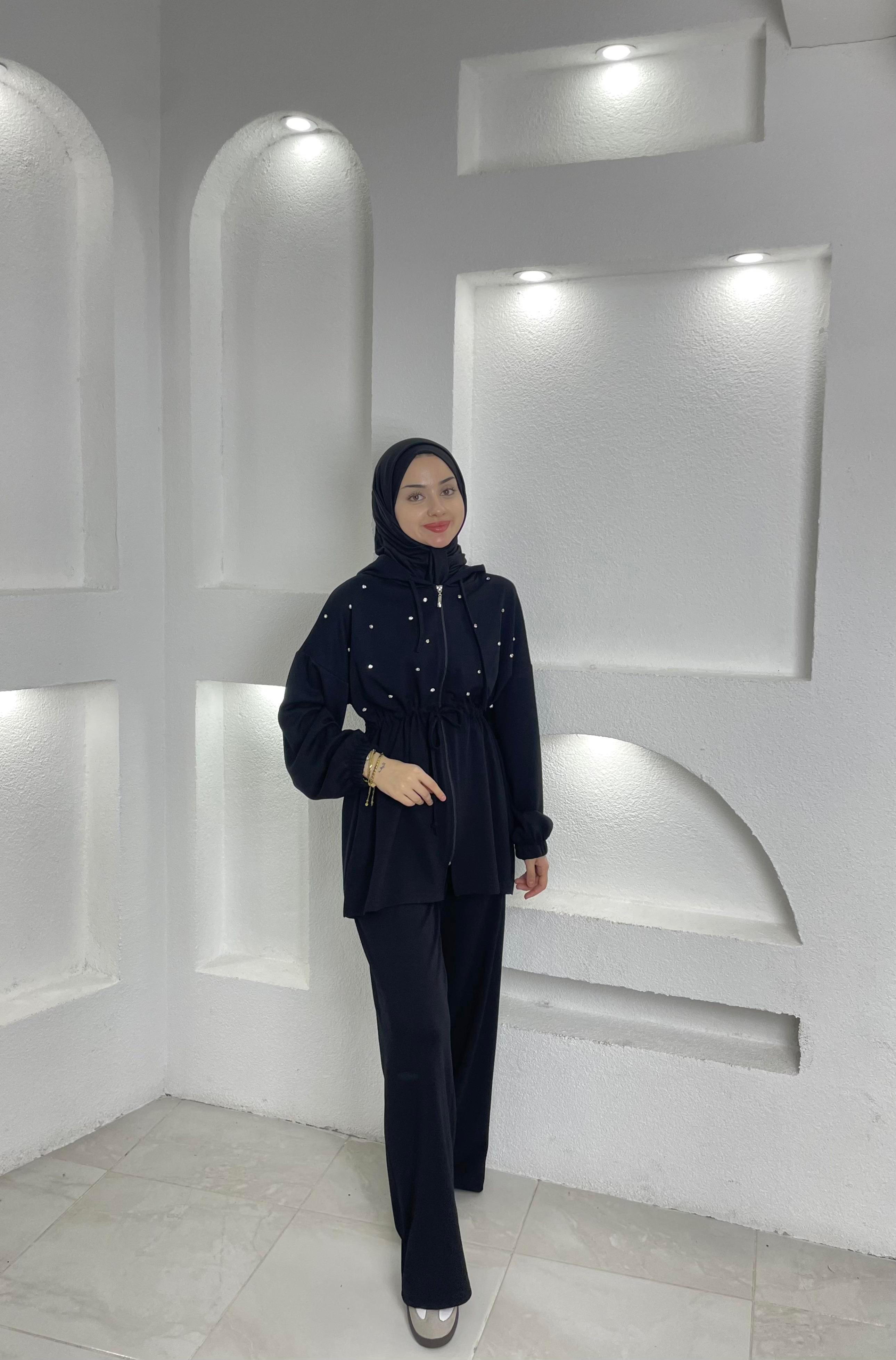 Taşlı İkili Takım | Siyah